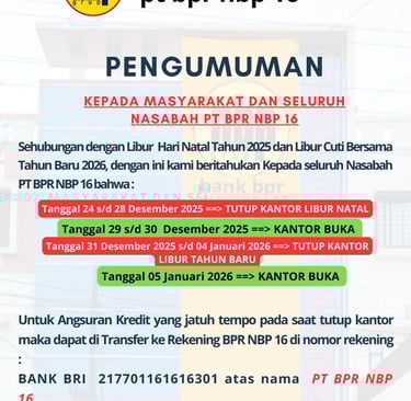 Bank BPR NBP 16 Merupakan Bank Peserta Penjamin LPS dengan Maksimum nilai jaminan Simpanan Sebesar 2 Milyar,